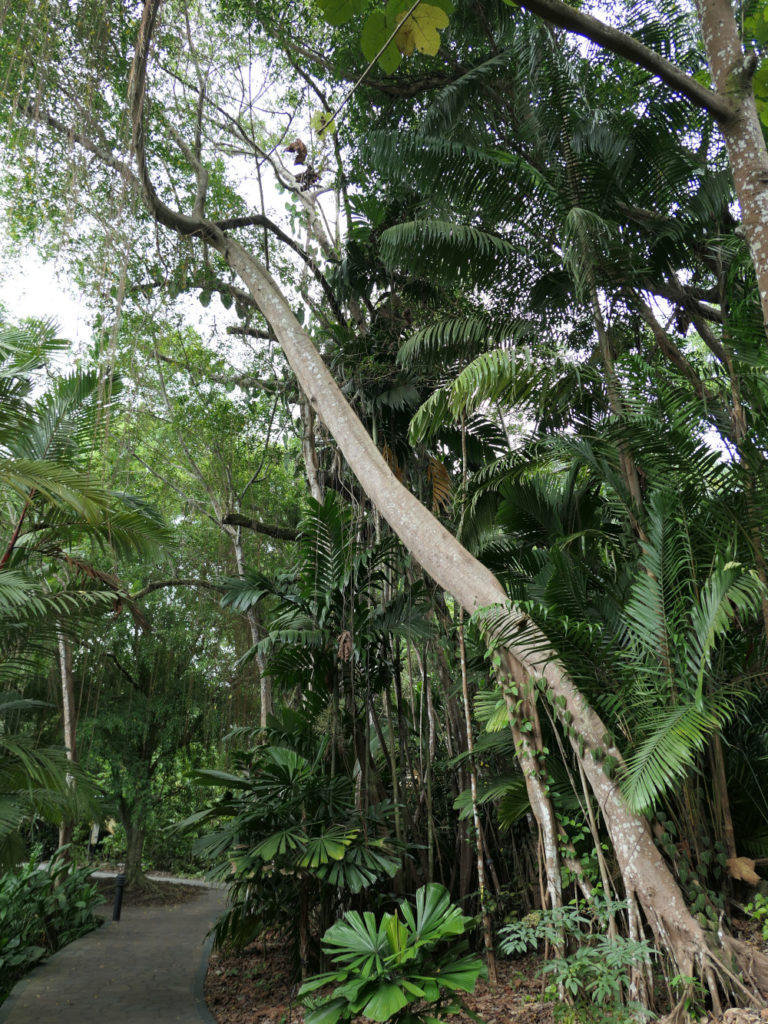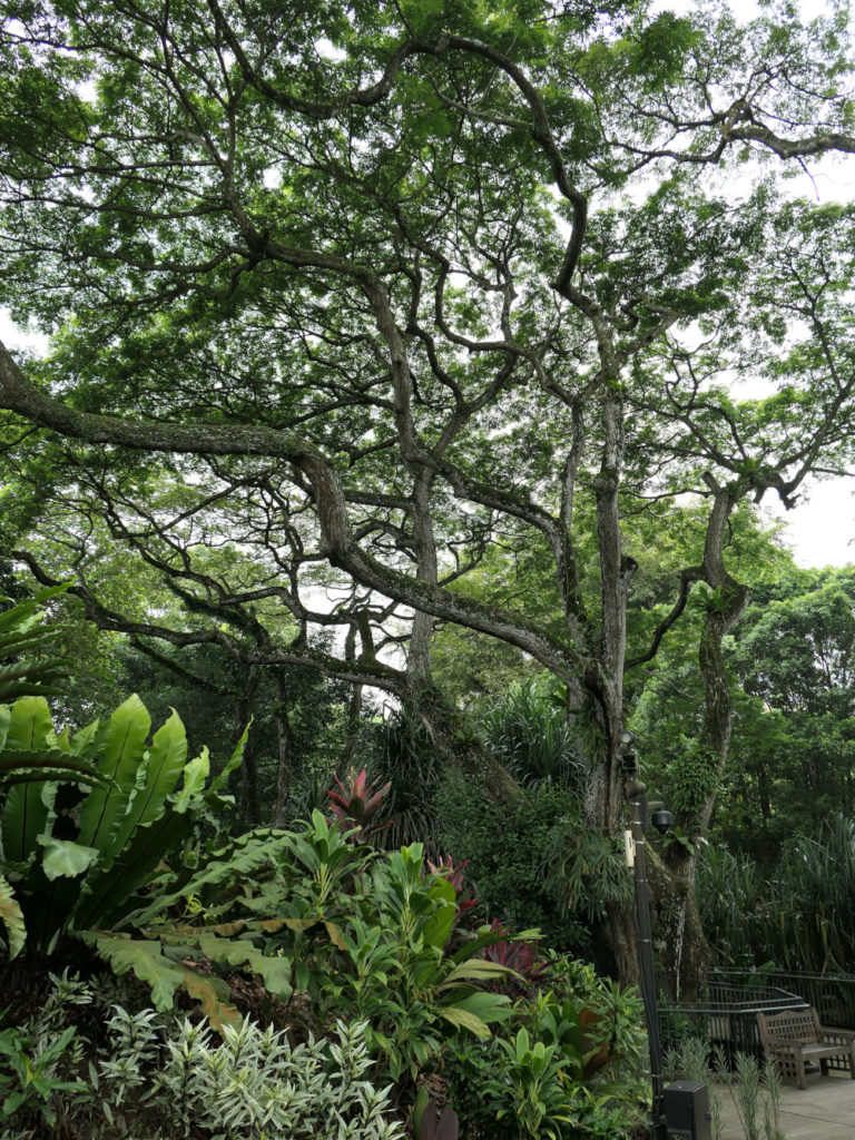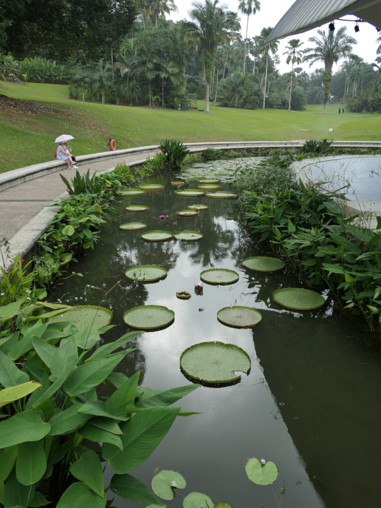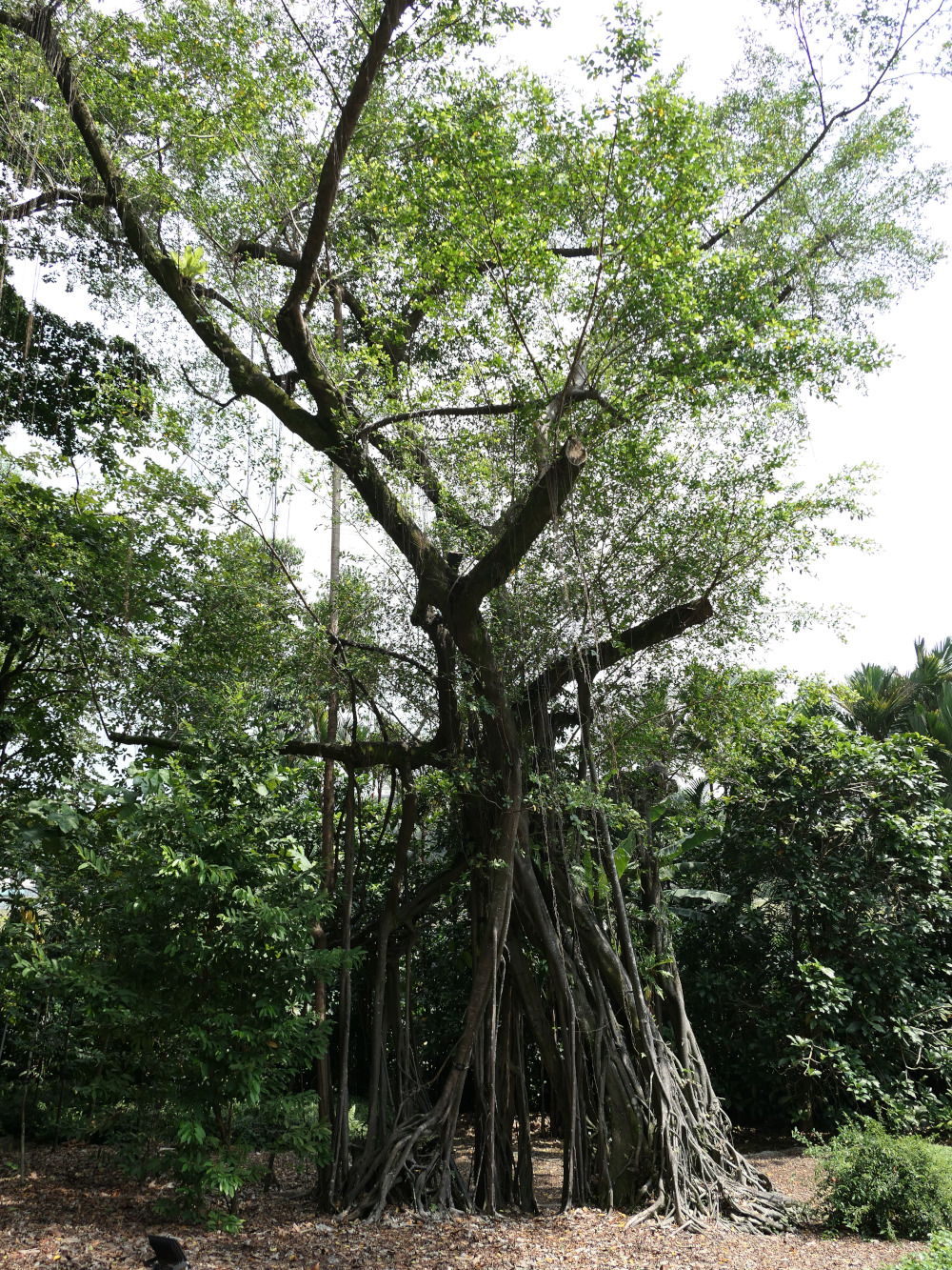 Aujourd’hui on a pris notre sac à dos direction la jungle, à la recherche de nouvelles aventures. Direction le parc « Jardin botanique » de Singapour. En fait de jardin, on est plus proche de la jungle. Il fait beau, pas de pluie prévue à l’horizon, on décide de partir le matin pour profiter de la relative fraîcheur… un petit trajet en métro avec changement de ligne, et quelque 15 minutes plus tard nous voici arrivé devant l’une des entrées. Le parc est gratuit, propre (comme tout içi) et tout de suite on ressent l’humidité des lieux. On s’engouffre dedans en suivant des chemins qui se séparent, se rejoignent… le tout dans une végétation parfois éparse, parfois aussi dense qu’une forêt tropicale. Un peu comme si ils avaient pris un bout de jungle et tracé des chemins dedans.
