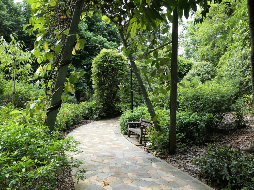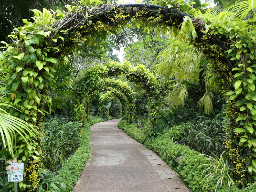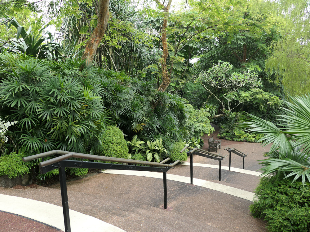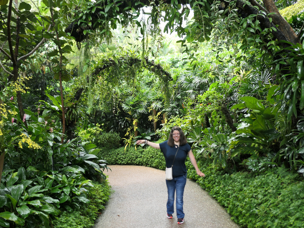 Aujourd’hui on a pris notre sac à dos direction la jungle, à la recherche de nouvelles aventures. Direction le parc « Jardin botanique » de Singapour. En fait de jardin, on est plus proche de la jungle. Il fait beau, pas de pluie prévue à l’horizon, on décide de partir le matin pour profiter de la relative fraîcheur… un petit trajet en métro avec changement de ligne, et quelque 15 minutes plus tard nous voici arrivé devant l’une des entrées. Le parc est gratuit, propre (comme tout içi) et tout de suite on ressent l’humidité des lieux. On s’engouffre dedans en suivant des chemins qui se séparent, se rejoignent… le tout dans une végétation parfois éparse, parfois aussi dense qu’une forêt tropicale. Un peu comme si ils avaient pris un bout de jungle et tracé des chemins dedans.