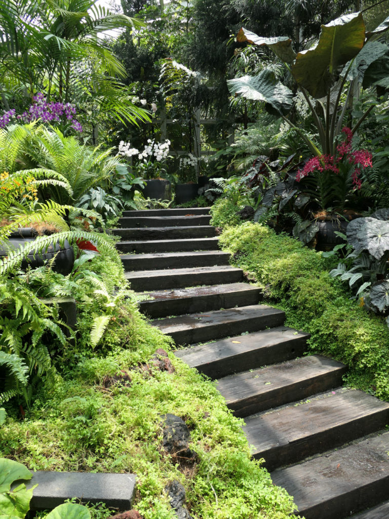 Pas grand monde (je pensais qu’il y aurait plus de monde) et on prend grosso modo la direction du point d’orgue de la visite: le jardin des Orchidées.