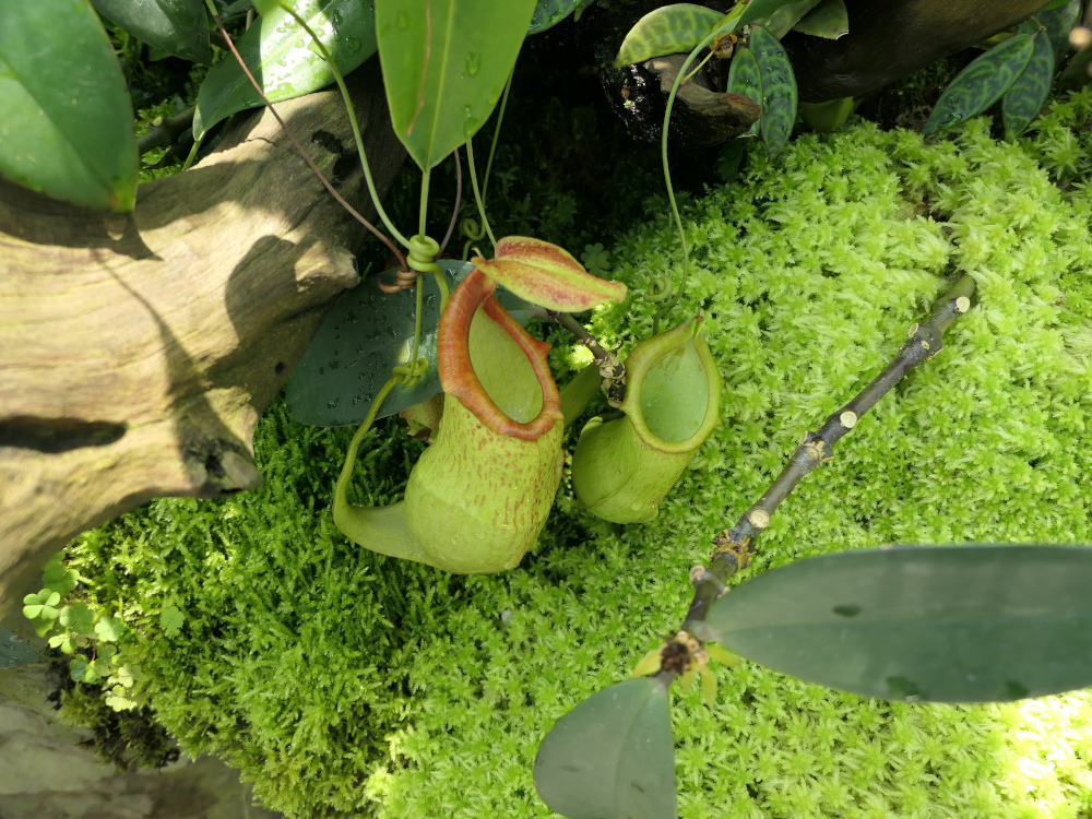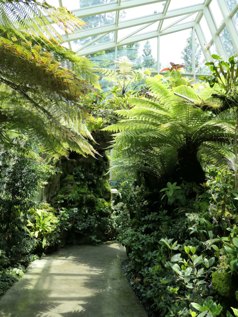 Au détour d’un chemin on arrive sur une serre. Je me suis demandé si il pouvait vraiment faire plus chaud dedans que dehors et …. c’était une serre climatisée! Bonheur! Parce que la pluie avait rafraîchi l’air mais avec le retour du soleil, on commençais à cuire. La serre ne paie pas de mine de l’extérieur mais elle est superbe à l’intérieur. Tout un chemin avec un décors magnifique. Des fleurs de partout.