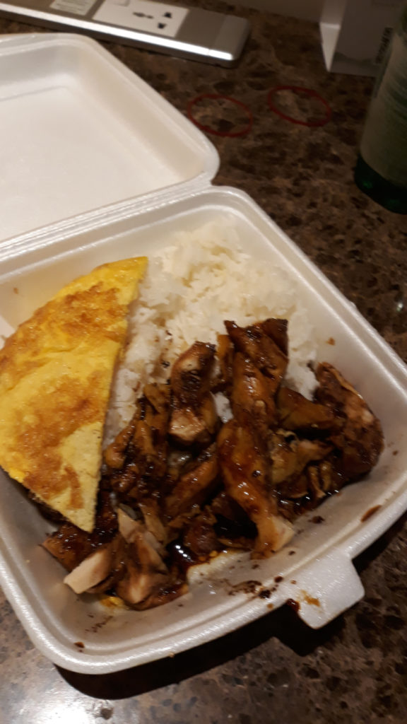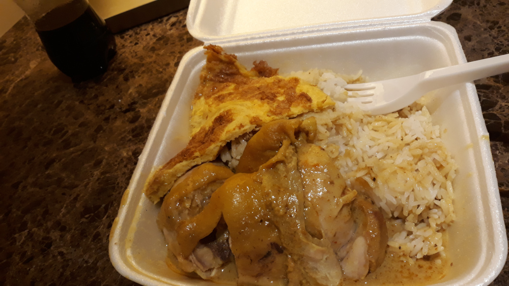 Ce sont deux plats à base de poulet et riz. Le premier est servi avec un curry un peu épicé et l’autre on avec une super bonne sauce. La street food est pas cher, on en a eu pour 15 dollars singapouriens soit 10,4 euros pour 2. Et les portions sont généreuses.