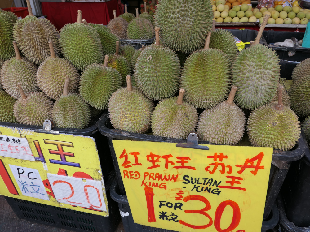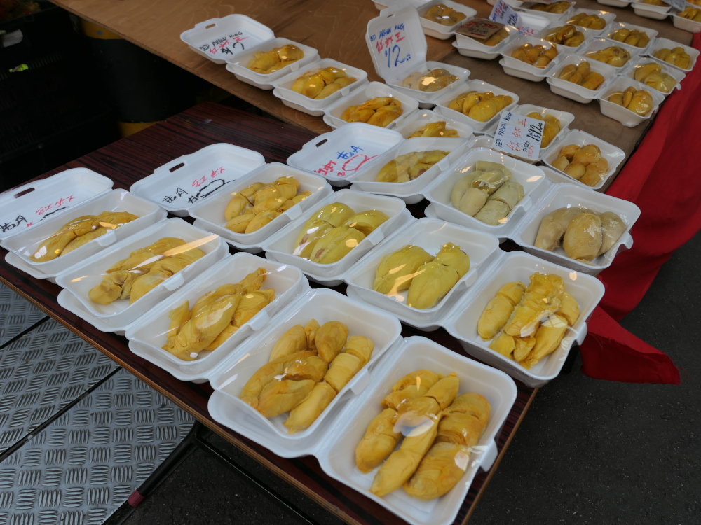 On a trouvé du durian. Bon ça sent pas bon mais faut pas abuser. Ca a l’odeur d’un melon pourri.