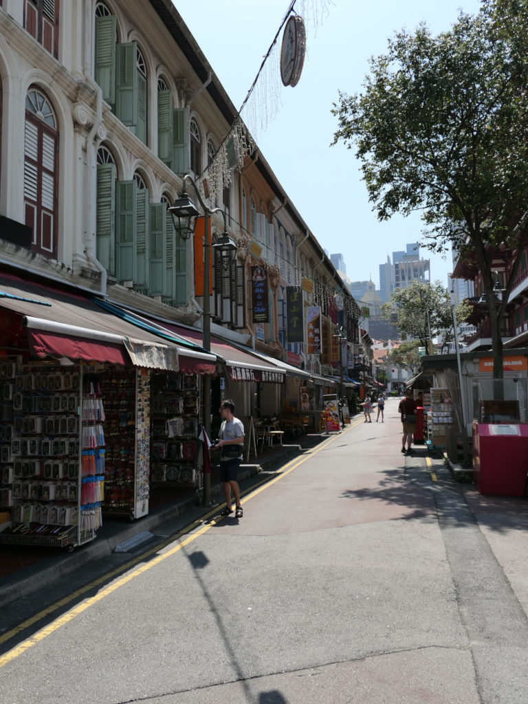 Aujourd’hui on vous emmène à la découverte du quartier Chinois. Singapour possède 4 langues officielles dont le Chinois (Mandarin). On croise pas mal de chinois et ils ont leur quartier à Singapour. C’est pas très grand, et seule la partie centrale est encore très typée chinoise. Le quartier est enclavé dans la ville, entouré de gratte ciels.