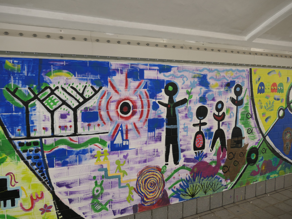 Dans les passages souterrains (pour éviter de traverser la route) ils ont décoré les murs avec des fresque. Aucun tag.